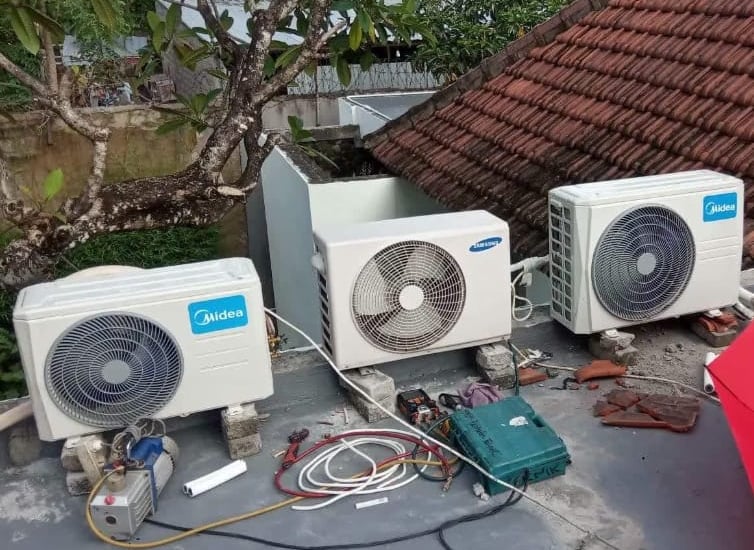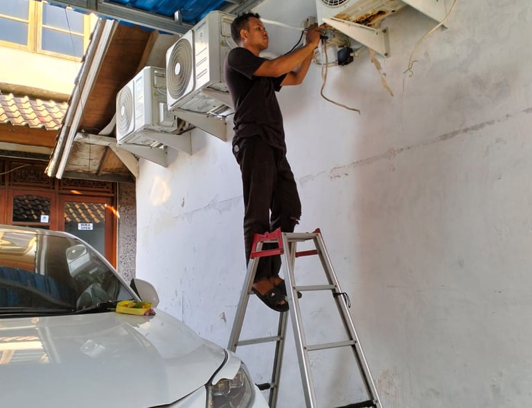 Teknisi sedang mengganti komponen rusak